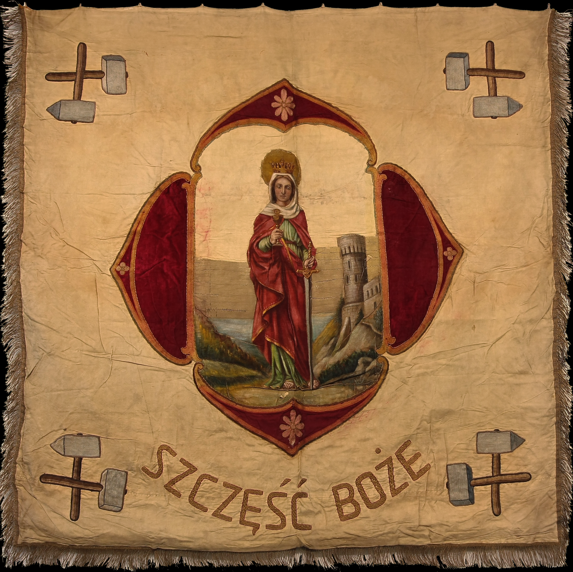 Sztandar kopalni "Deutsch Bleischarley" z 1925 r. Zbiory izby Regionalnej w Piekarach Śl.