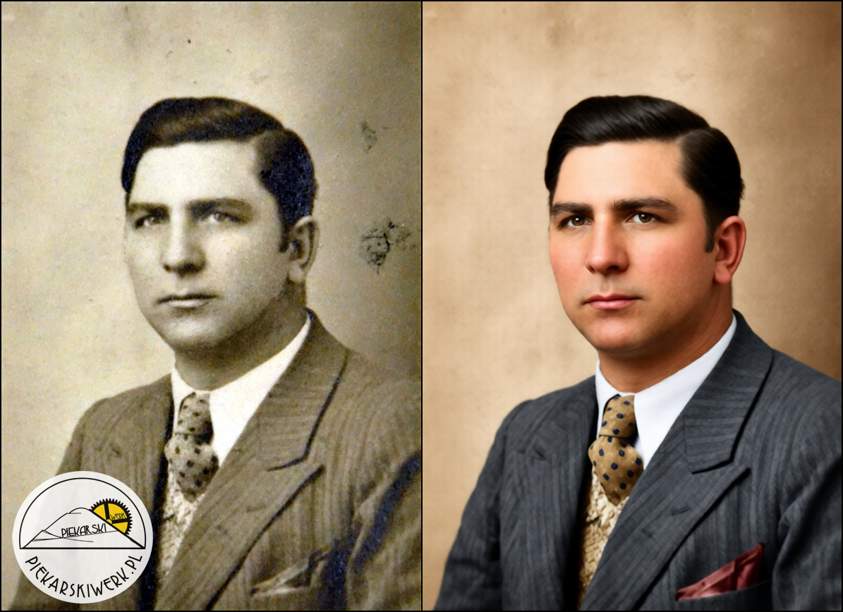 Henryk Myrcik, lata 30 (wraz z rekonstrukcją cyfrową). Źródło: Centralne Archiwum Wojskowe