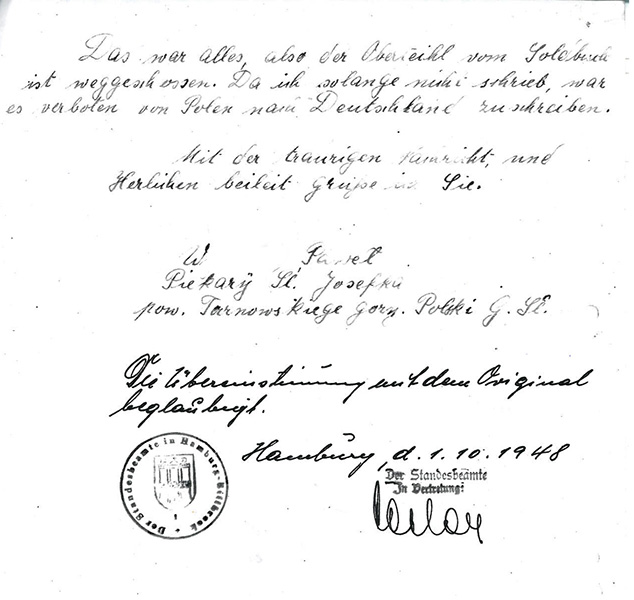 List Pawła W. opisującego tragiczne chwile w styczniu 1945 roku. Za udostępnienie listu dziękujemy panu Jackowi Boroniowi, a za tłumaczenie panu Tomaszowi Kapicy.