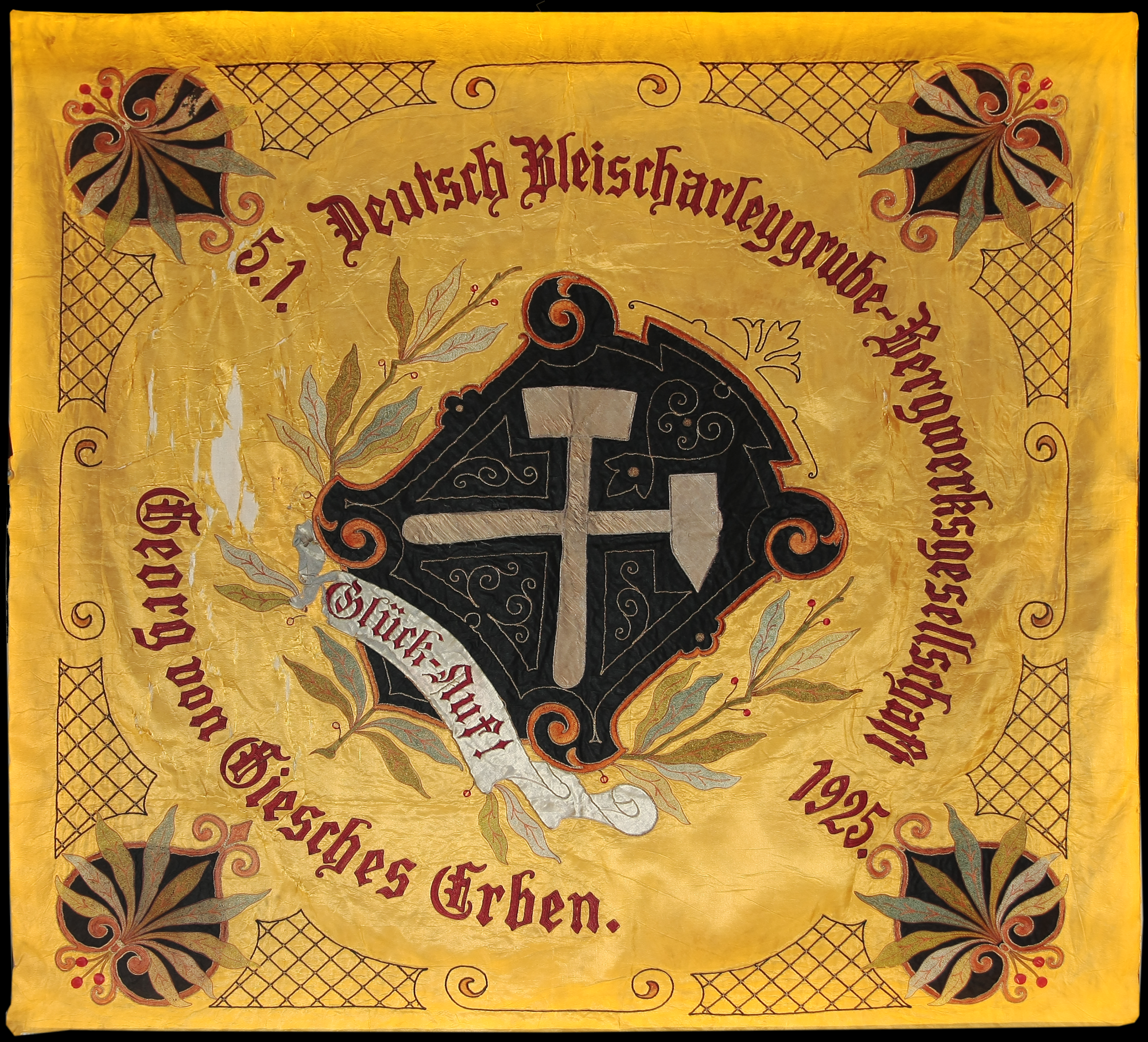 Sztandar kopalni "Deutsch Bleischarley" z 1925 r. Zbiory izby Regionalnej w Piekarach Śl.